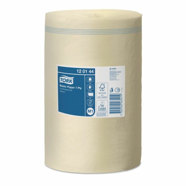Håndklæderulle Tork Basic Mini M1 1-Lag Ø14xB20.5cmxL115m U/Hylse Gul Genbrug