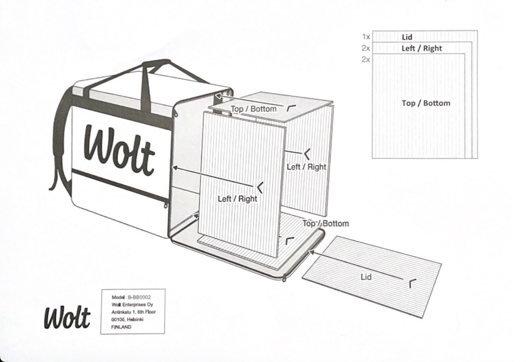 Pred tem pa te čaka sestava Wolt torbe, ki jo boš uporabljal/-a pri dostavljanju. Spodaj imaš navodila za sestavo, za pomoč pa imaš tudi ?  VIDEO ?